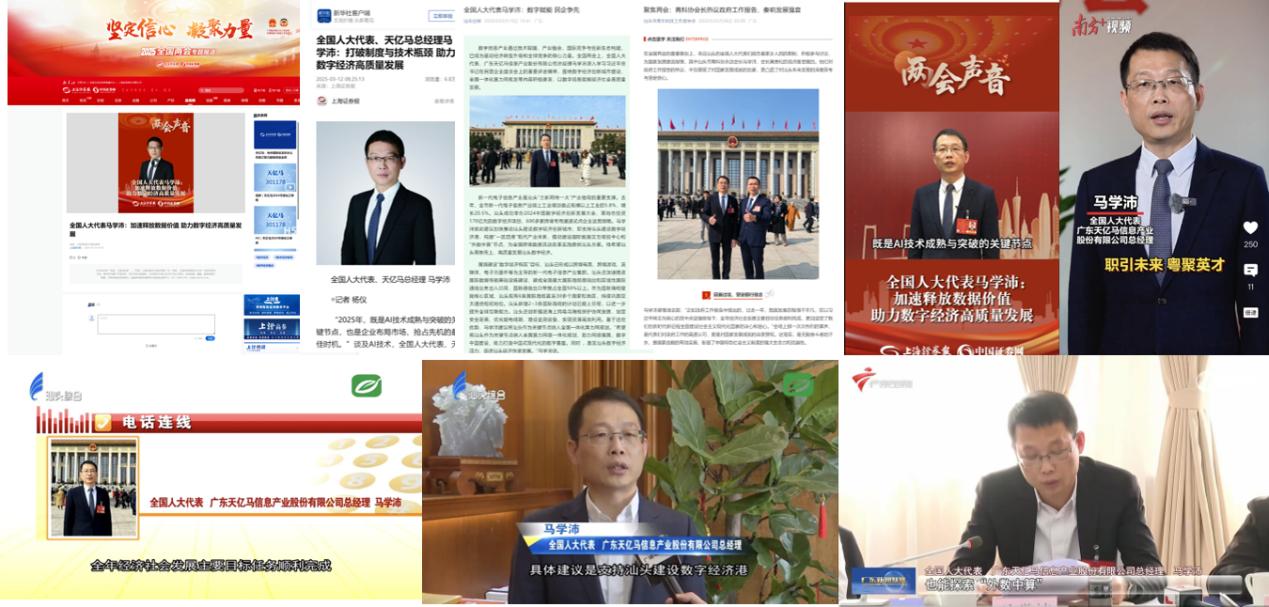 两会期间,马学沛代表还接受多家主流媒体采访,在“人工智能”“数字经济”“民营经济”等方面发表意见建议。据统计,境内外媒体相关采访报道共计30余篇,为推动汕头乃至广东高质量发展、推进深层次改革和高水平开放、服务全国发展大局积极建言献策,产生了广泛而积极的宣传效果和社会影响。